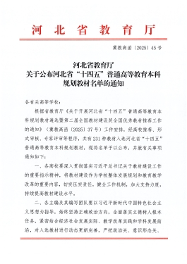 喜报!我院四本教材入选河北省“十四五”普通高等教育本科规划教材