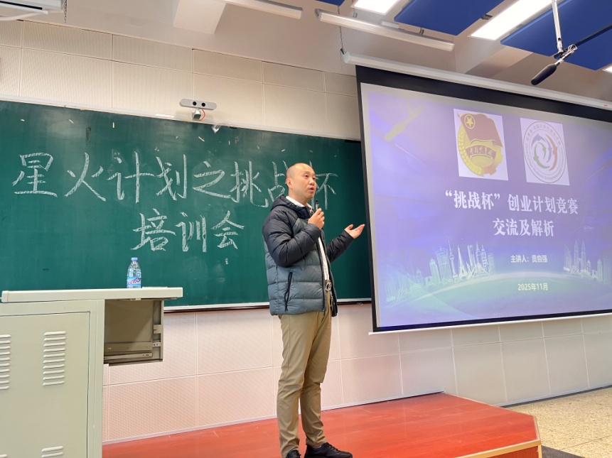 为进一步强化金融学子科技创新实践能力,助力学生精准把握2026年“挑战杯”创业计划竞赛备赛方向、提升学院项目参赛竞争力,11月17日,我院依托“星火竞赛训练营”核心培育体系,特别邀请资深评委贡自强老师开展专项培训,200余名学生现场参与学习,共同夯实备赛基础。