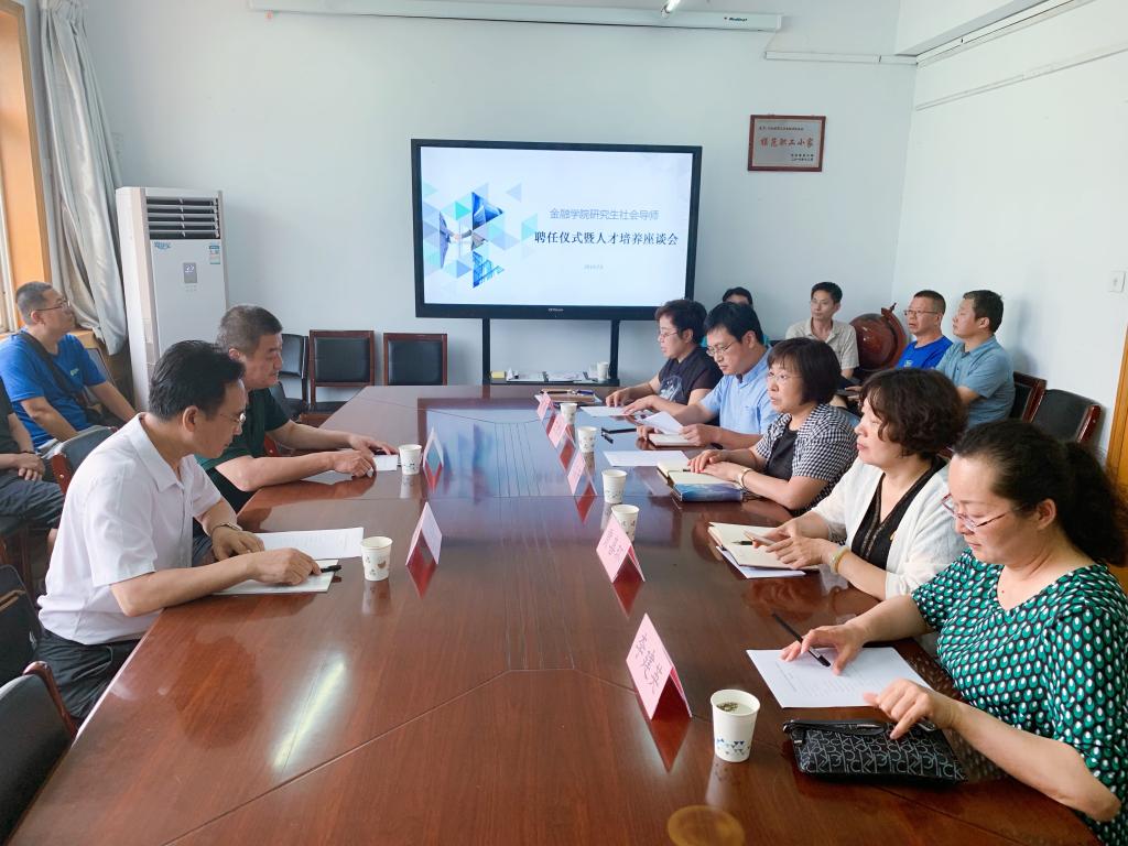 7月5日下午3点,太阳集团tyc234cc在学院会议室举行了研究生社会导师聘任仪式暨人才培养座谈会。TYC234CC太阳成集团党委常委、副校长程瑞芳、河北省金融学会秘书长、中国人民银行石家庄支行金融研究处处长郑向阳、中国工商银行河北省分行副行长王琦以及太阳集团tyc234cc领导班子成员及研究生导师代表参加了会议。